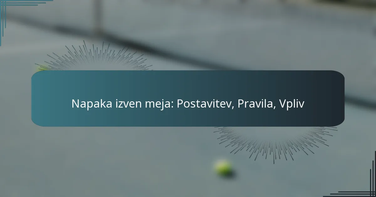 Napaka izven meja je opredeljena kot katera koli akcija, ki povzroči, da žoga ali igralec zapusti določeno igralno območje. To lahko vodi do izgube posesti ali kazni, odvisno od športa. Razumevanje te pravil je bistveno za igralce in uradne osebe, saj vpliva na strategijo igre in izide.